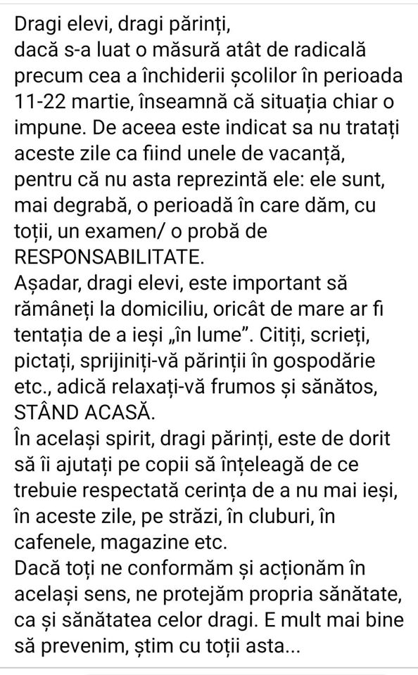 Администрация, педагогический коллектив лицея в связи с сложившейся ситуацией в стране обращаются к Вам с огромной просьбой: не поддаваться панике, следовать всем гигиеническим рекомендациям по профилактике и предупреждению заражения вирусом нового типа. Напоминаем, что временно приостановлен учебный процесс – это не каникулы,а КАРАНТИН, предполагающий изоляцию человека от различных факторов риска. Преподаватели лицея подготовили для учеников разнообразные задания, которые помогут не отстать от учебной программы. Поддерживайте связь с классными руководителями любыми доступными способами (по Скайпу, Вайберу, соцсети, телефону и т.д.) и узнавайте домашние задания, по возможности передавайте всем одноклассникам. Спасибо.
